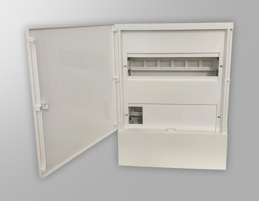 Caja contenedora dotada de doble carril DIN (EN 60715) que admite las siguientes configuraciones: