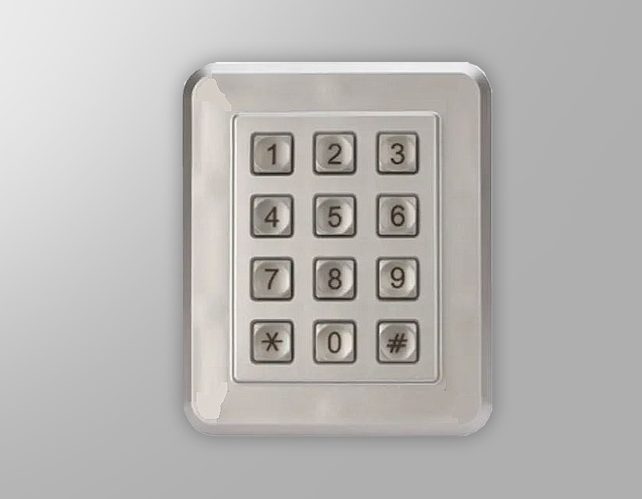 - Teclado metálico antivandálico de 12 teclas para montaje tanto en interiores como en exteriores.